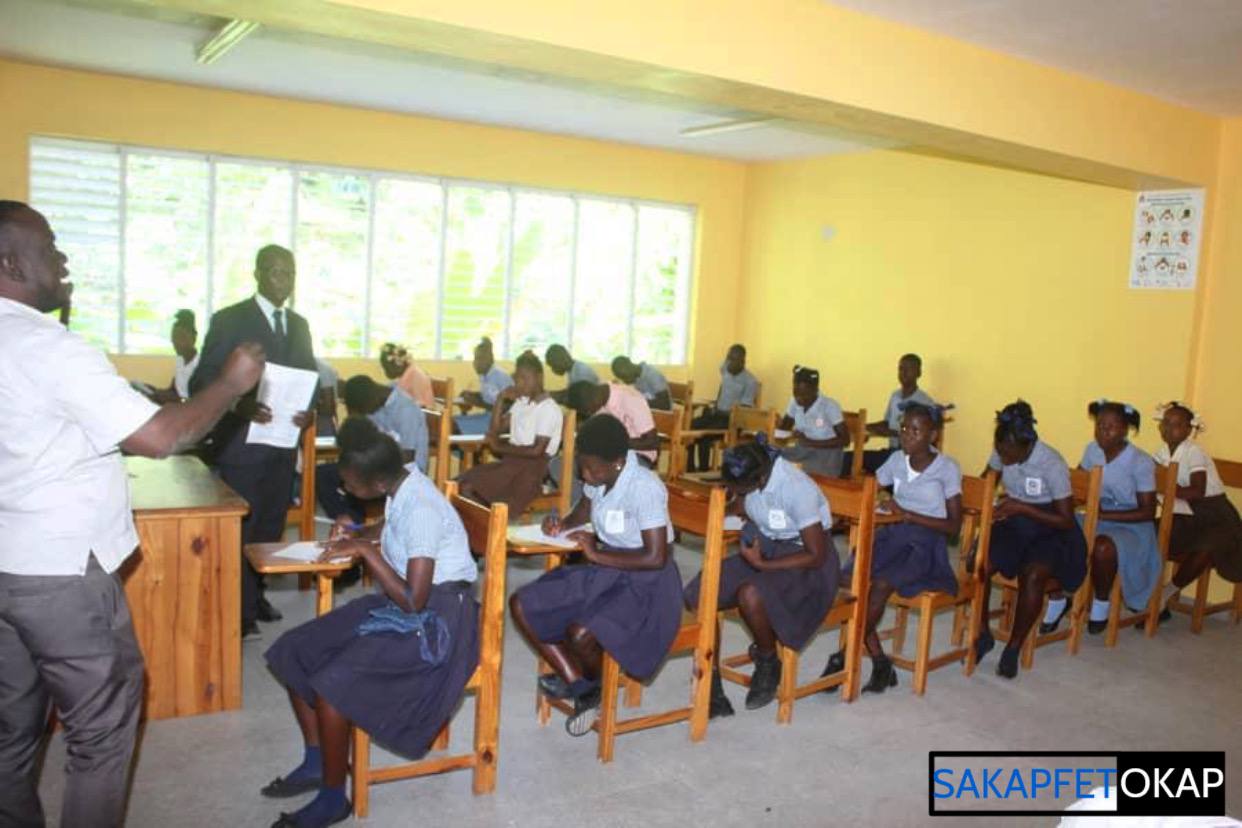 Ces examens ont débuté dans un climat de paix et de sérénité, dans les différents centres choisis : le Collège St-Joseph, pour les écoles du Centre-ville et des zones avoisinantes ; Le Collège Presbytéral Saint-Bertin pour les écoles de Petit-Bourg de Port-Margot et ses environs et l’École Nationale de Bayeux, pour les écoles de la cinquième (5ème) section.