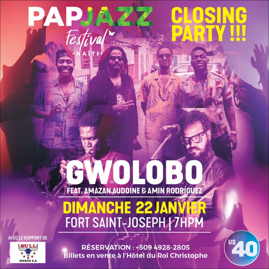 Le seul événement payant du festival mettra en vedette des noms et visages que le Cap connaît bien puisqu’il les a vu naître, grandir et mûrir. C’est l’inusable GWO LOBO (Manito – Paul Beaubrun – Kolo – Ti Tanbou – Kabysh) qui clôturera cet événement de grande envergure en featuring d’Amin Rodriguez et d’ Amazan Audoine au Fort Saint Joseph, le dimanche 22 janvier 2023 à 40 $. Le public est prié de retirer leurs tickets auprès de l’Hostellerie du Roi Christophe et de Cap Deli. La réalisation de ce festival au Cap-Haitien démontre une fois de plus qu’une autre Haïti est possible, pour paraphraser les organisateurs. L’exergue est mis aussi sur la nécessité impérieuse de changer le narratif sur Haïti, tout en combattant sans relâche au quotidien pour améliorer la qualité de vie chez nous, sur la terre de nos ancêtres, en Haïti.