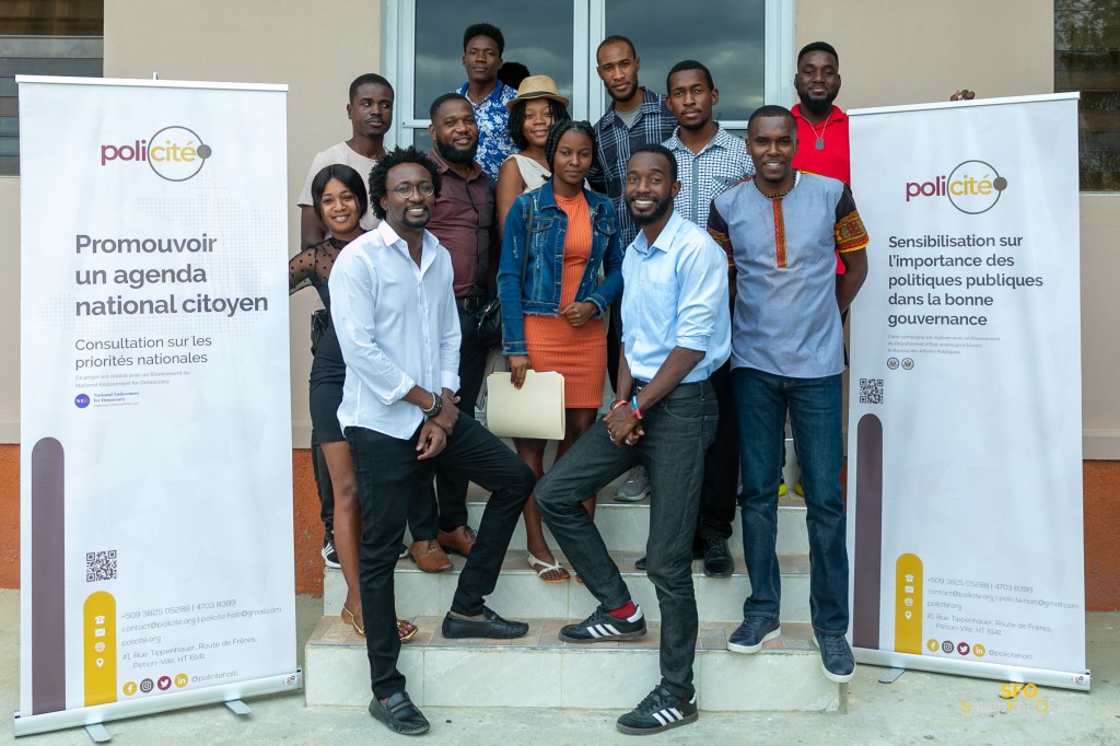 POLICITE, yon òganizasyon Ki regwoupe divès jèn pwofesyonèl nan diferan domèn Pou pwopoze solisyon a plizyè pwoblèm politik piblik ke yo rive idantifye.