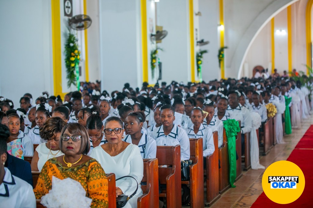 Cette cérémonie symbolique a réuni les élèves des deux institutions scolaires, quelques invités particuliers et notables de la ville. Un défilé au son des cuivres, cymbales et tambours de la fanfare du Collège Notre Dame du Perpétuel Secours a accompagné les participants dans leur marche pour rejoindre la cathédrale depuis les locaux des deux écoles.
