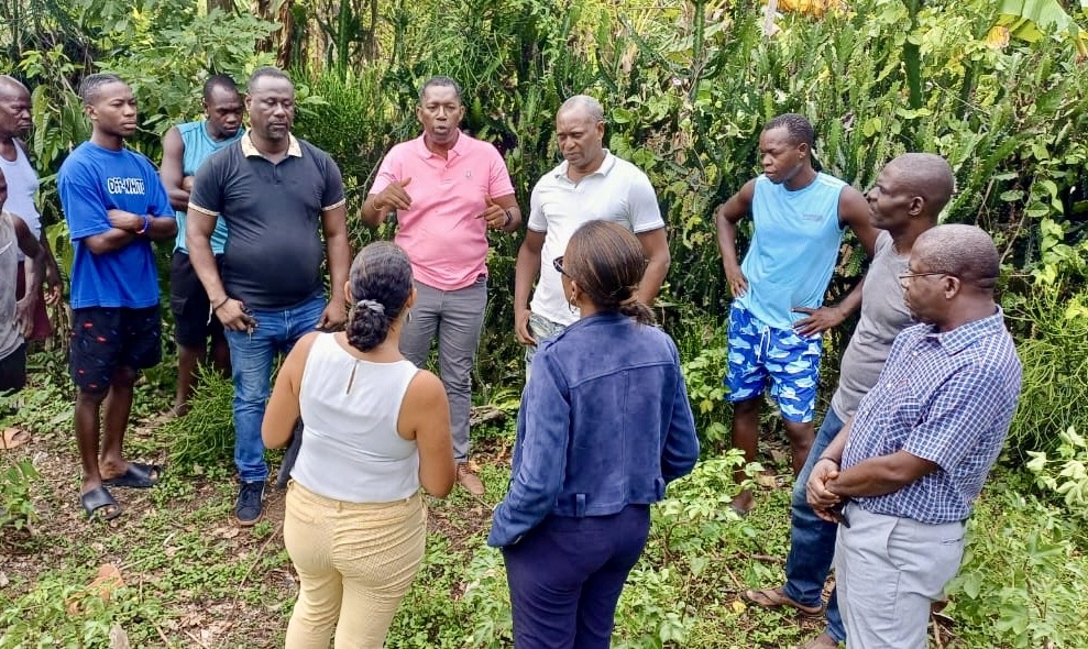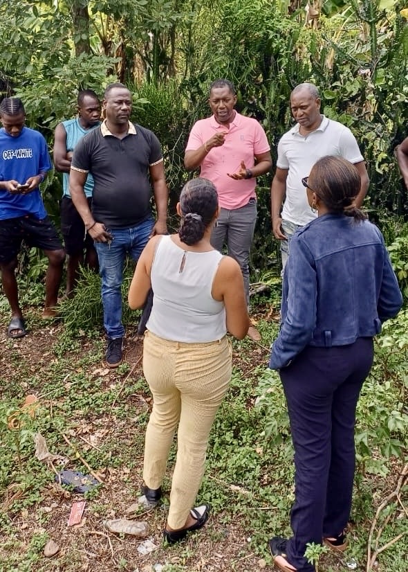 Parmi les membres de la mission figuraient Mme Marie Christine Stephenson, Secrétaire Technique du CIAT, Mme Sharina Lochard (CIAT/MICT), M. Jude Saint-Natus, chef de projet Poto Mitan, ainsi que Mme Chilove Celestin, chargée du suivi des achats et subventions du projet.